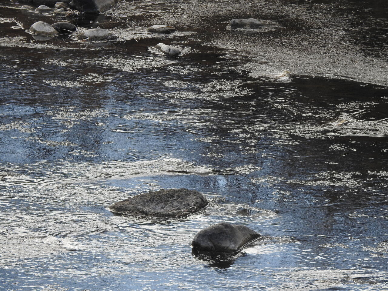 上流部で水中の石に氷ができ それが日中はがれて流れてきます