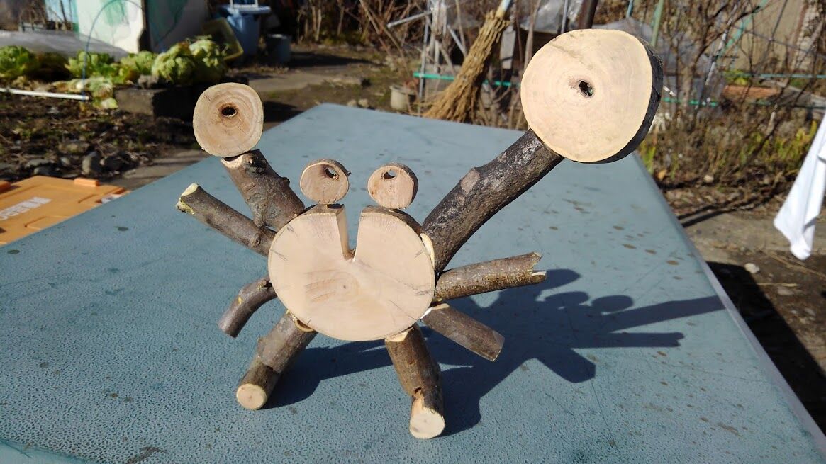 剪定枝でカニさんのオブジェ作ってみました