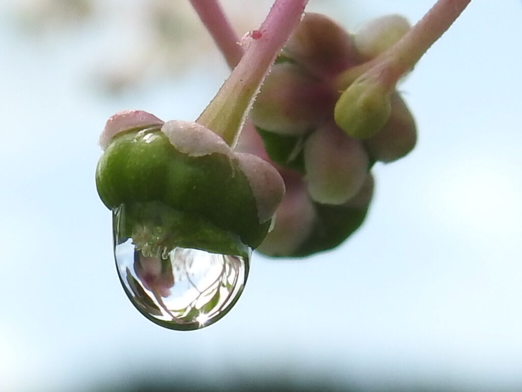 柿の下の日陰で隠れるように咲いてたアジサイ
