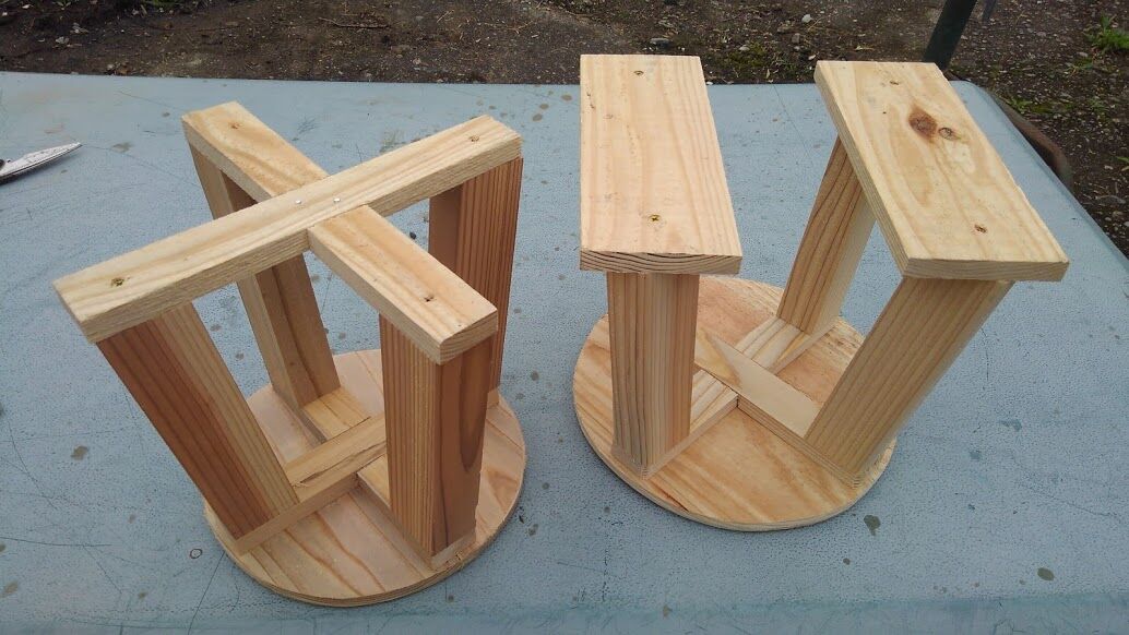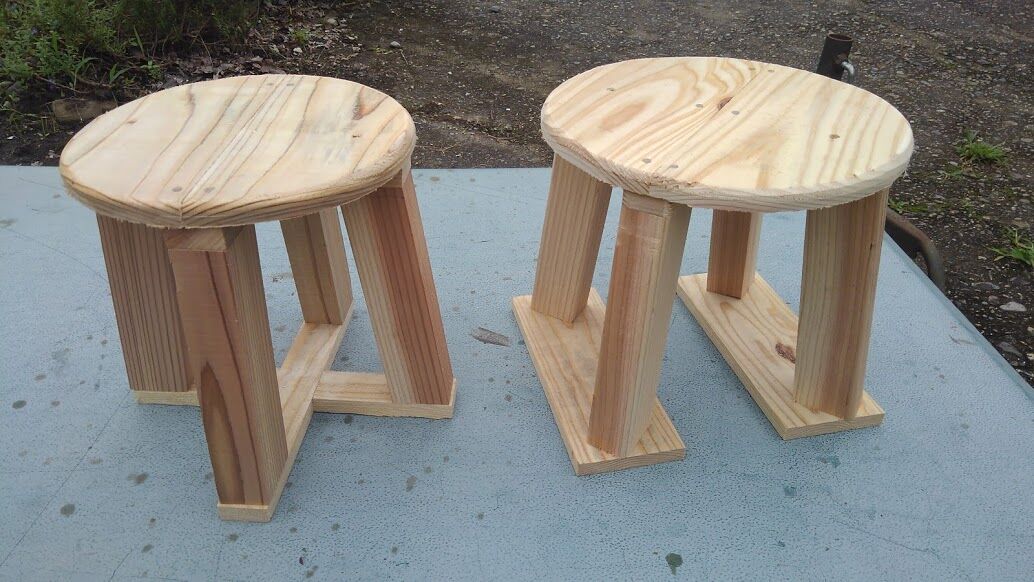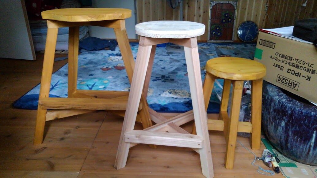 今日の木工は丸型の草むしり用の丸椅子を二種