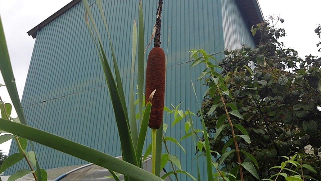 何と水槽でガマの穂まで とても庭とはお思われないでしょう