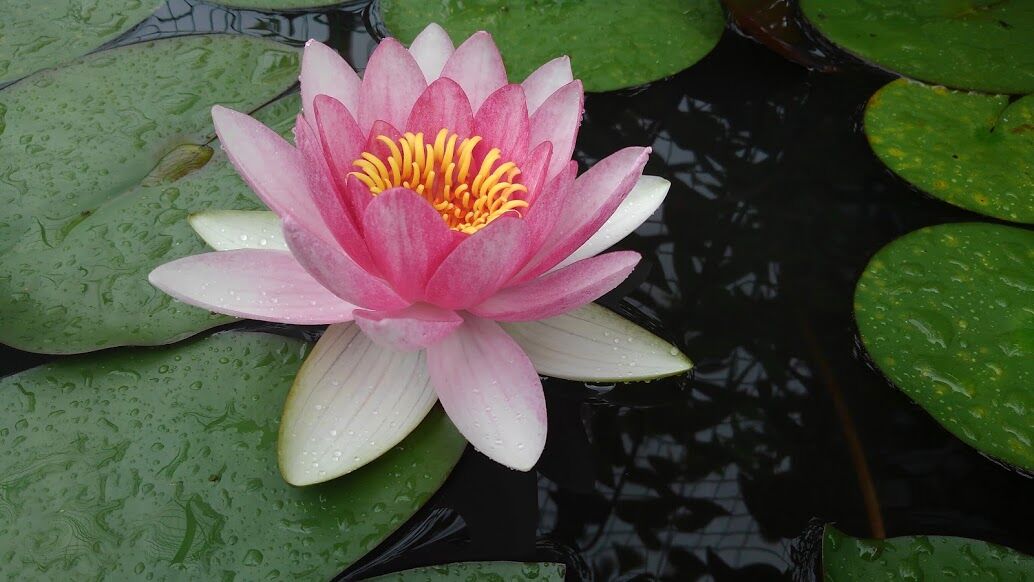 メダカの水槽にスイレンが