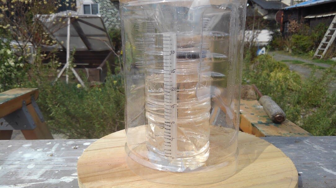 今日は大小二つのペットボトル使って雨量計を作りました