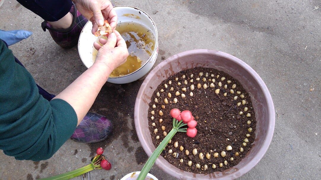 なんとクンシランの種を取り出して植えつけてました