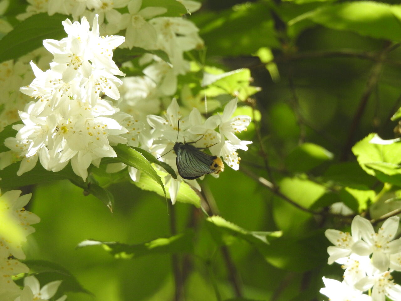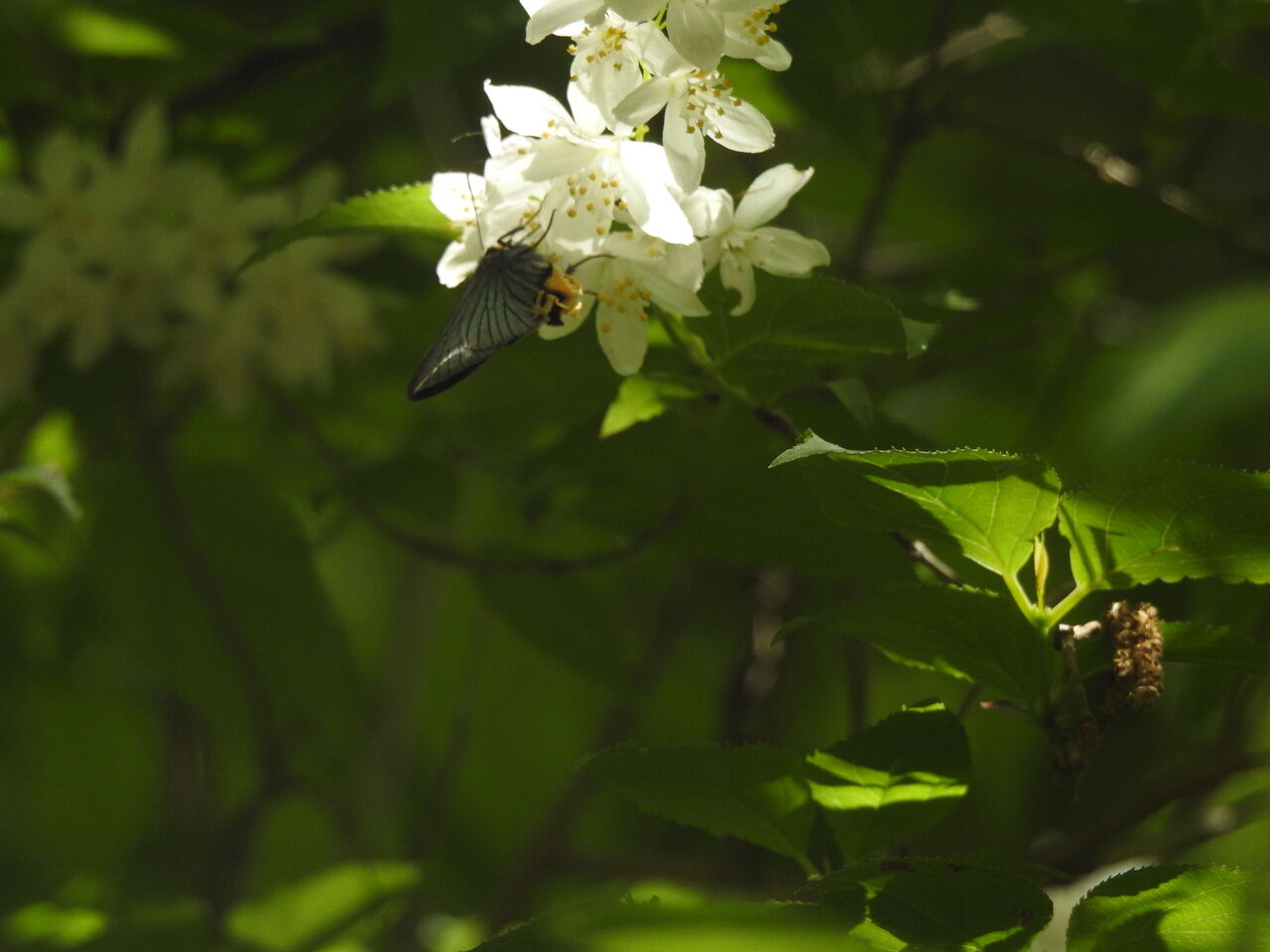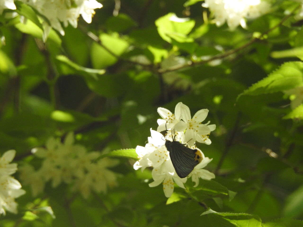 ヒメウツギにはクロアゲハが ここでよく見かけます