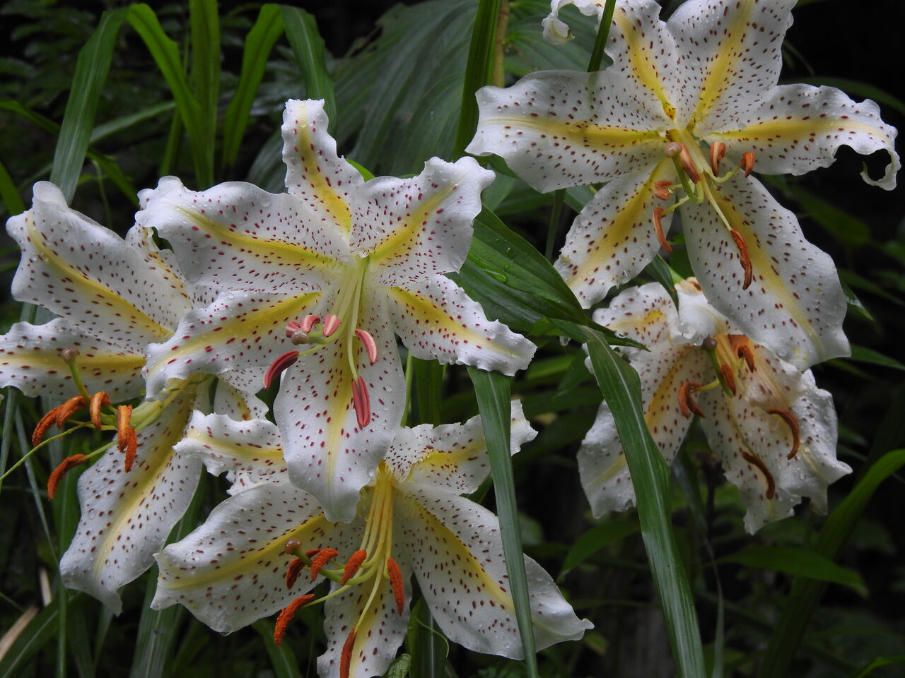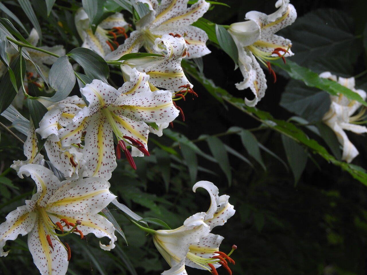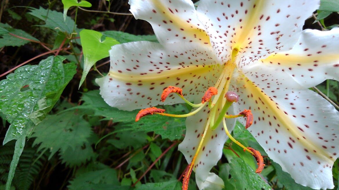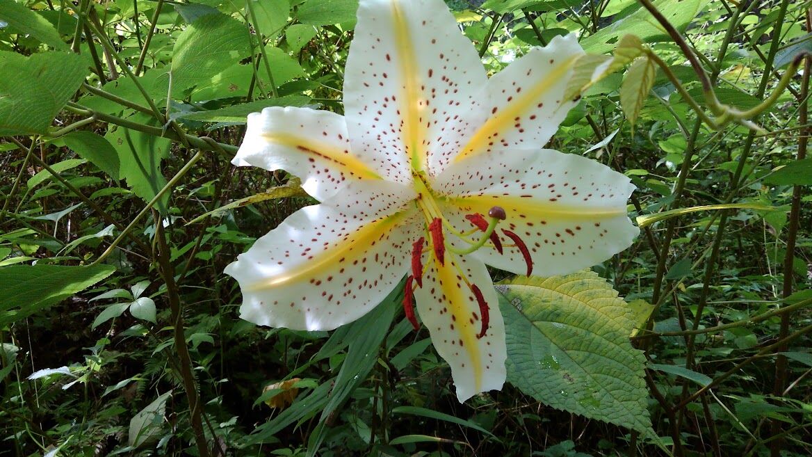 散策コースではウバユリの蕾が膨らんできましたまたまた山百合ですが 一株で五個も花を付けてました