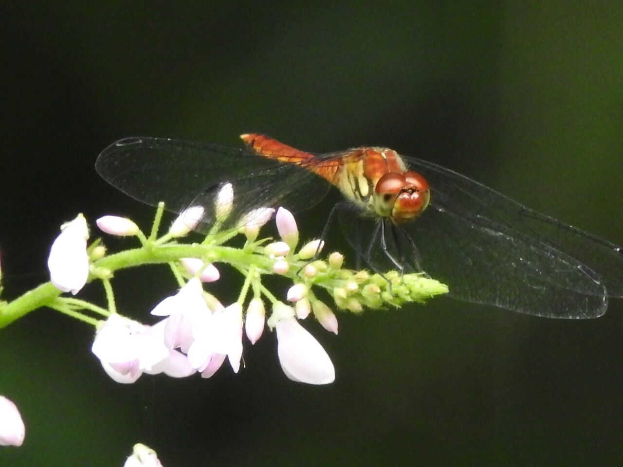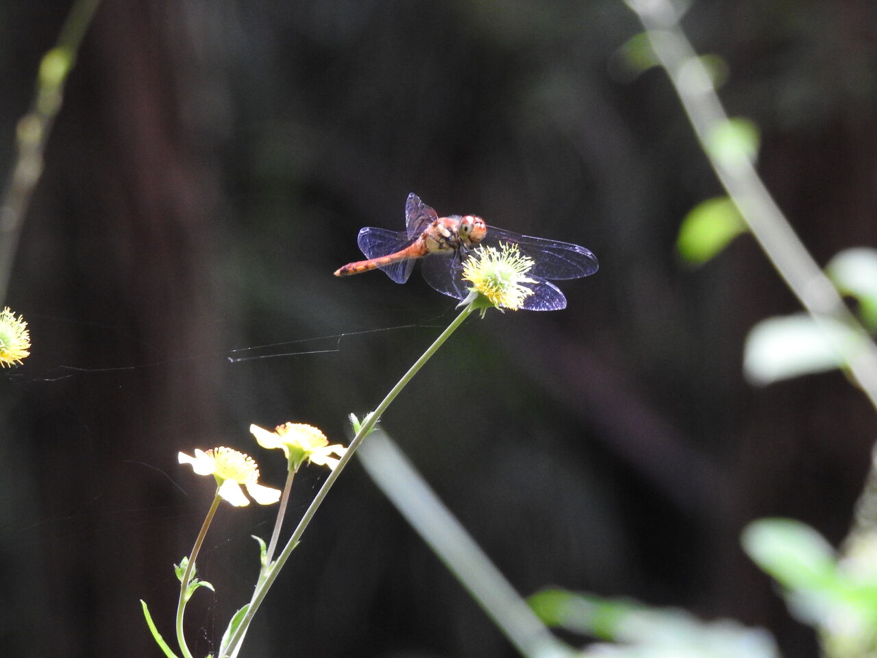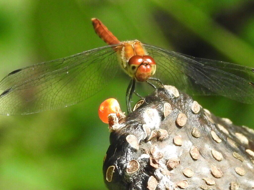 僕の方が自転車に乗り一目散に退散 明日から行けるか心配です杉山の景色ハギの花にアキアカネが もうこればかりでただこのポイントに今日子ずれのイノシシに出会いもうトンボどころではないかなこの周りはかなり荒らされていたので 心配はしていたのですが明日は車で見てきてから行くかなペットボトルのモグラ除けの風車