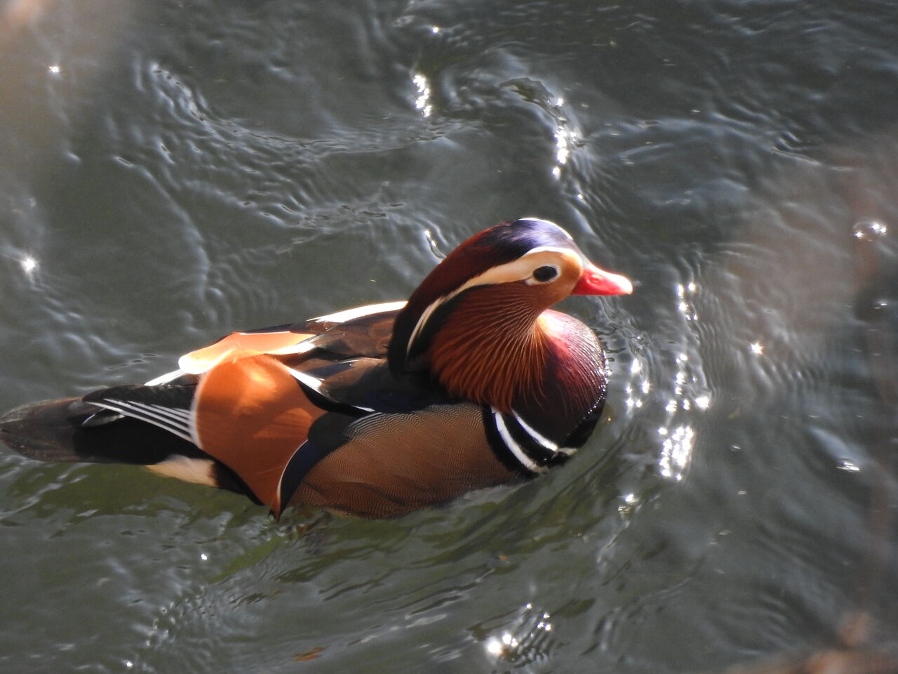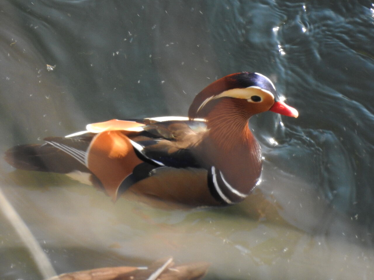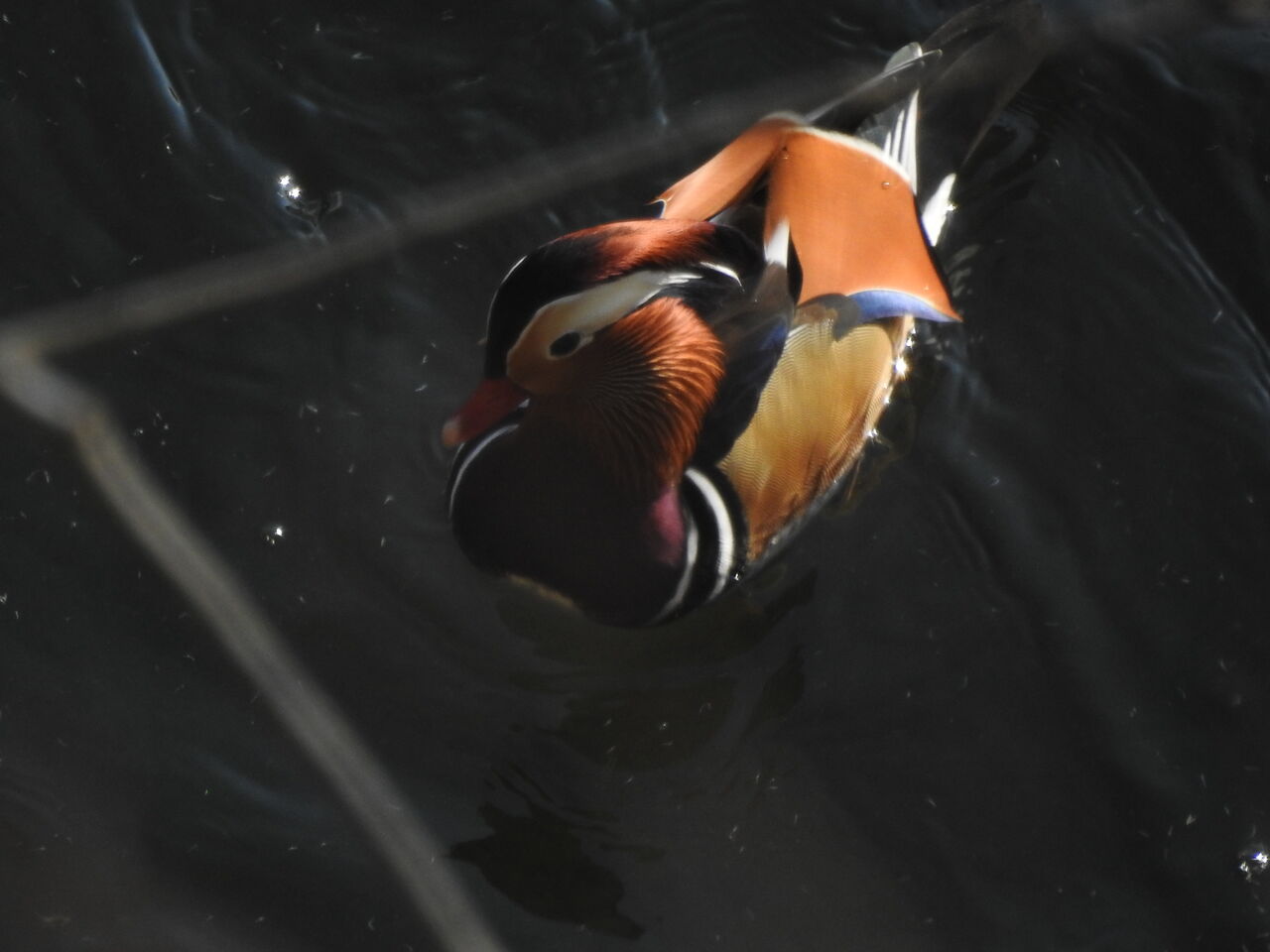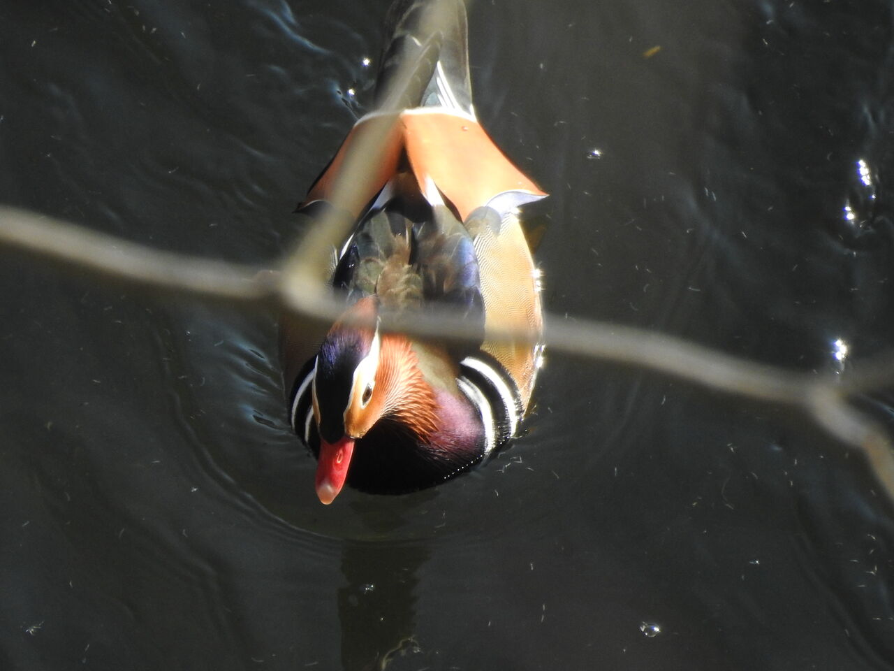 今日はその一つオシドリ載せますねマガモみてたらオシドリがチラッと 数年ぶりに出会えました道路から川を 途中に枝があり今まではカメラ向けなかったのですが 正に真上から撮ってる感じで 模様がよく見えますなんでこんなに派手な色になったのか