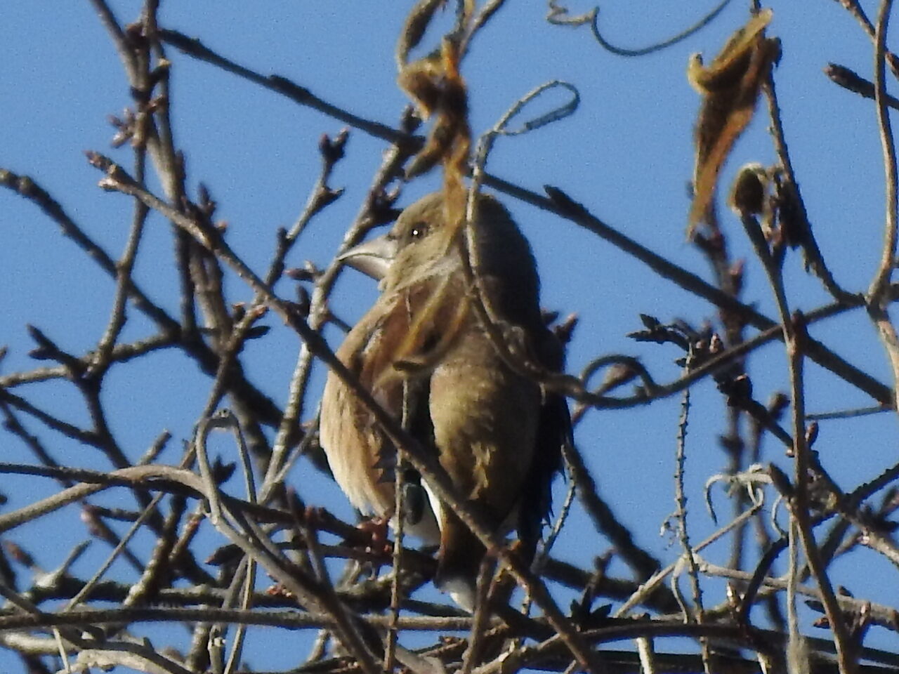 2026年01月28日 シメに出会う1/28 今日は晴れてたけど風が強く寒かったです散策でも陽だまりで日向ぼっこしながらシメ撮ってましたカミさんはこの冬4回目のコンニャク作りガマの穂の元気玉 下の二個が葉で上は崩れてきた穂霜が解けてきて葉に雫がシメ 高い木の天辺でよく見るとかなり高い位置だけど ツルがまいてます最終的にはこの木も枯れる運命かなかなり遠いので 肉眼ではシメと分からずトリミングで大きくしてやっとわかります今日は白菜の古漬けをごま油で炒めたら うまかったですnorisuke