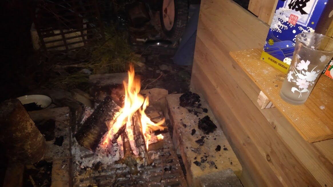 泡盛を飲みながらの焚火は、贅沢だね。あはははっ!!
