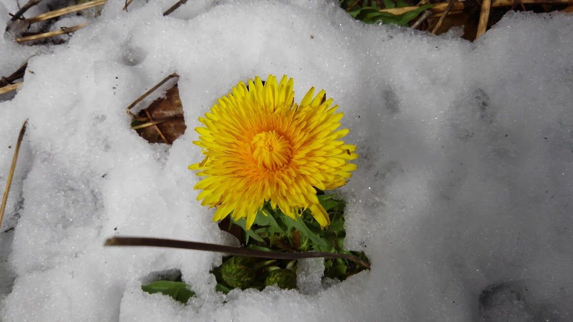 タンポポも雪の中だと違った花に見えます~ナイス!