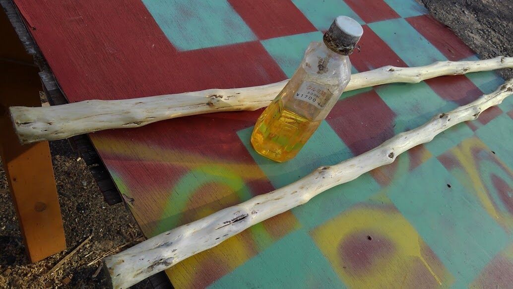 今日はアカザの杖を綺麗にサンドペーパー掛けて