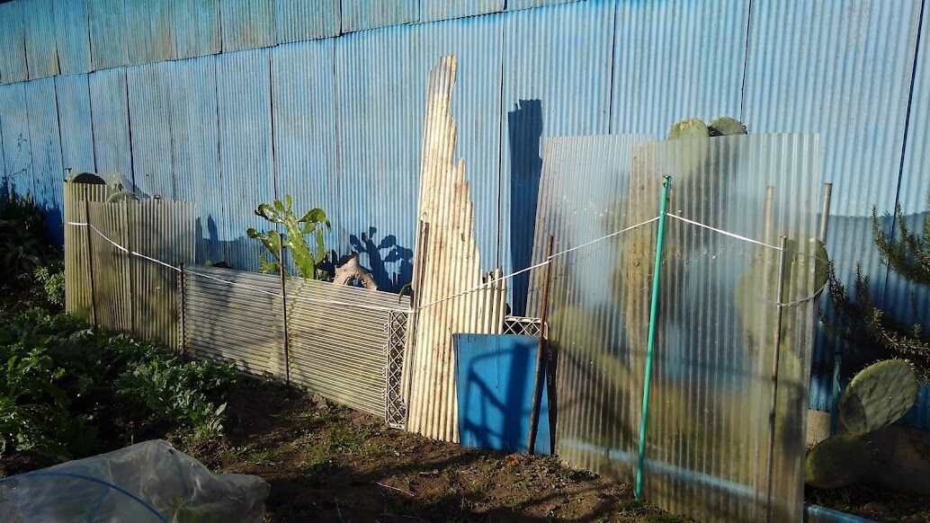 ウチワサボテンに風よけの波板を