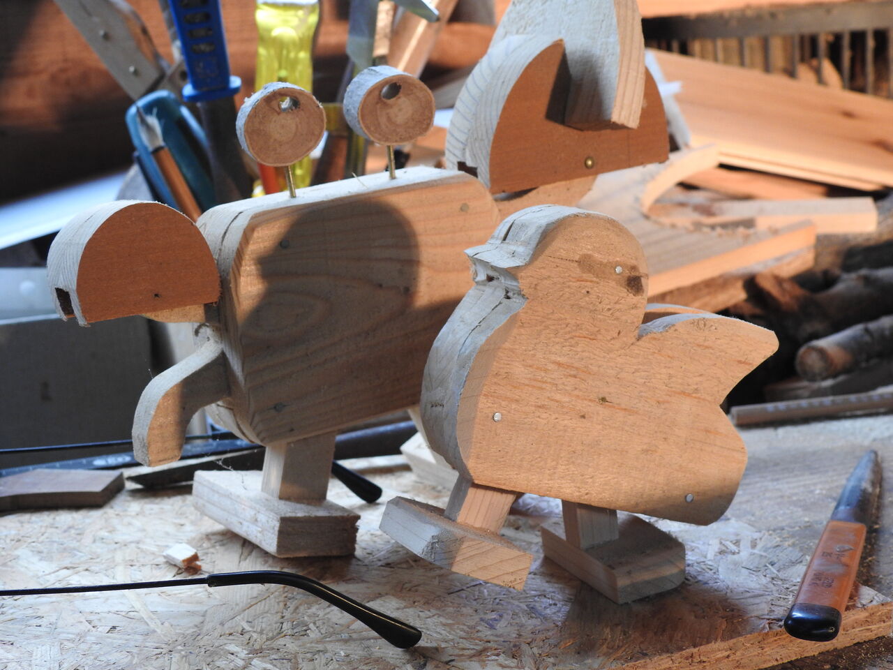 2022年08月28日 カタカタ玩具作り8/28 今日は午後まで雨で特に明け方はかなり強く久々にまとまった雨が降った感じです暇だったので以前作ってたカタカタ玩具の手直しして上の動画二本撮ってみました これはカニさんでハサミの大きさと 🍙をバランス取る重り代わりにして手前の小鳥さんは今日作ってみましたやはり玩具作りは楽しいですねnorisuke 「田舎暮らし」カテゴリの最新記事 < 前の記事次の記事 > コメント コメント一覧 (14) 1. 920-375 2022年08月28日 16:05 カタカタ玩具楽しいですね~。 動画見せていただきました。 こちらも今回雨が降って やっと周りが潤いました。 今日はとても涼しくて過ごしやすかったです。 0 norisukesan1124 3 がしました 8. norisuke 2022年08月29日 15:13 >>1 カタカタ玩具作りにまたハマりそうです。距離が長いともっと動画も面白いのですが、今回は微妙な調整があり、短い距離になりました。ありがとう。 0 norisukesan1124 3 がしました 2. みかん 2022年08月28日 16:32 キャー かわいい こういうのが 作れる人 器用なんですねー♪ 素晴らしい 👏 こちらは 天気がよく 産直へ行ってみました 花苗など 売れ残りばかりで 秋野菜 少し苗が出てただけでした ちょっとだけ 買って お試し 今回 うまくできたら 種から チャレンジしてみたいです 0 norisukesan1124 3 がしました 9. norisuke 2022年08月29日 15:14 >>2 秋野菜もこれからですね。僕も道の駅行ったけど、買うもは無かったです。 ありがとう。 0 norisukesan1124 3 がしました 3. siroattsi 2022年08月28日 18:40 ノリスケさんの作るカタカタは、動きがとても可愛い~~。 お孫さん、大きくなっても大喜びなさいますよ。 大人が見ても楽しい。 久しぶりの雨なんですね。こちらは、よく降ります。今日は朝方降って、昼間は爽やかなお天気でした。おかげでナスが元気で、枝切りしてないけど一休みしないで、なり続けています。(⋈◍>◡<◍)。✧♡ 0 norisukesan1124 3 がしました 10. norisuke 2022年08月29日 15:16 >>3 そう最近のナスは夏休みしないで、よく出来てます。そう枝も詰めなくて 大丈夫ですね。ただ下の方の葉はこまめに取り除き、風通しよくだけを してます。ありがとう。 0 norisukesan1124 3 がしました 4. 由乃 2022年08月28日 20:20 こんばんは カタカタ可愛いですね❤️ 動きがいいなあ 子供じゃなくても楽しめますね😆 今日はこちらは一日晴れてました まだまだ残暑厳しいです😅 0 norisukesan1124 3 がしました 11. norisuke 2022年08月29日 15:18 >>4 カタカタ玩具作り始めると病みつきになります。もうかなりたまってますよ。 その都度、バランスの微調整が大変ですが、それがまた面白くて。 ありがとう。 0 norisukesan1124 3 がしました 5. RockyBird 2022年08月28日 21:06 こんばんは。 カニさんの方は動きがゆっくりなのに対して、小鳥さんは動きが速く小鳥らしくてよいですね。 大変よく出来ています。 拍手!ポチ。 0 norisukesan1124 3 がしました 12. norisuke 2022年08月29日 15:19 >>5 そう大きくなるにしたがって、動きはユックリになりますね。 まずはモデルを決めることから始めます。ありがとう。 0 norisukesan1124 3 がしました 6. スノーモンスター 2022年08月29日 08:51 おもちゃ作り再始動ですね! 可愛くて素朴でしかも動きがある…良い事づくめですね~ おにぎり持った蟹さん心なしか嬉しそうに見えます! 0 norisukesan1124 3 がしました 14. norisuke 2022年08月29日 15:23 >>6 やはり面白い世界で、カタカタ音聴くだけでも楽しくなりますね。 なかなかベースになる板が無くて、今回は短くなってしまいました。 ありがとう。 0 norisukesan1124 3 がしました 7. 上尾のアン 2022年08月29日 10:12 動く玩具はいいね。 思わずうふふふとなってしまった私。 カニさんはおにぎりを持ってるのね。 これでバランスをとっているとはね~すごい!! 0 norisukesan1124 3 がしました 13. norisuke 2022年08月29日 15:21 >>7 雨でやることも無く、どうしようかなと思ってで、以前作ったカタカタ玩具が 目に留まり、その微調整から動画まで楽しめました。今度はまた最初から作ろうかなと。ありがとう。 0 norisukesan1124 3 がしました コメントフォーム 名前 コメント 記事の評価 リセット リセット 顔 星 情報を記憶 コメントを投稿する