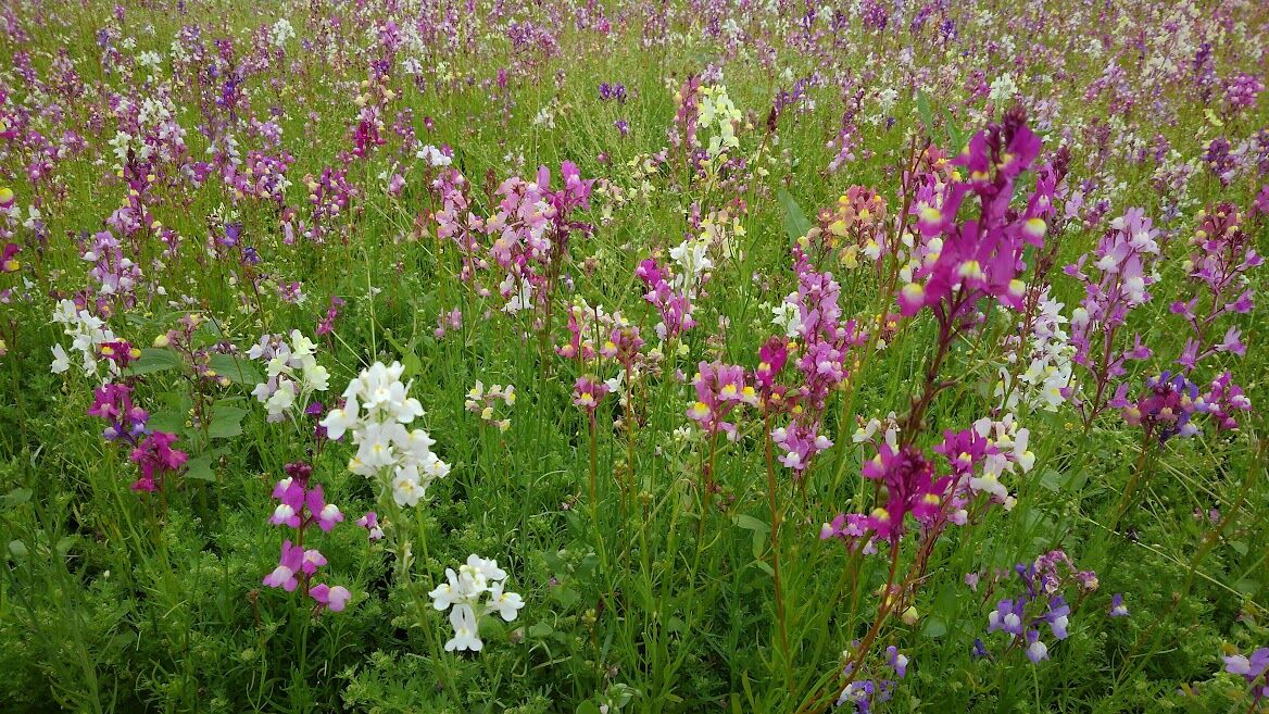 一面カラフルに咲いてるのは リナリア(姫金魚草)でしょうか