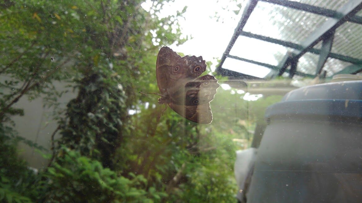 外に出して また元気取り戻してPC部屋の窓にヒカゲチョウが