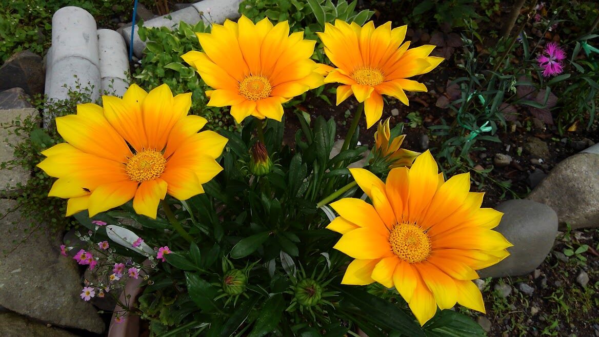 園芸種はペチュニアとガザニアではないでしょうか、