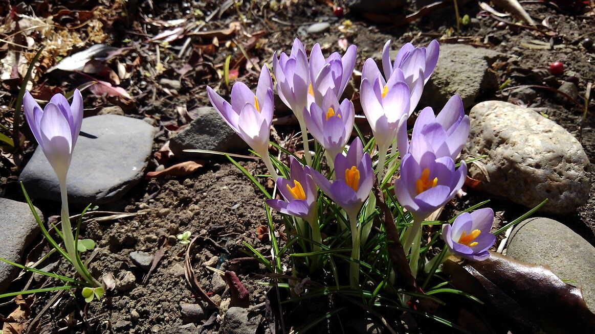 クロッカスの場所は、北風受けない日だまりで、だから早いんだと思います。