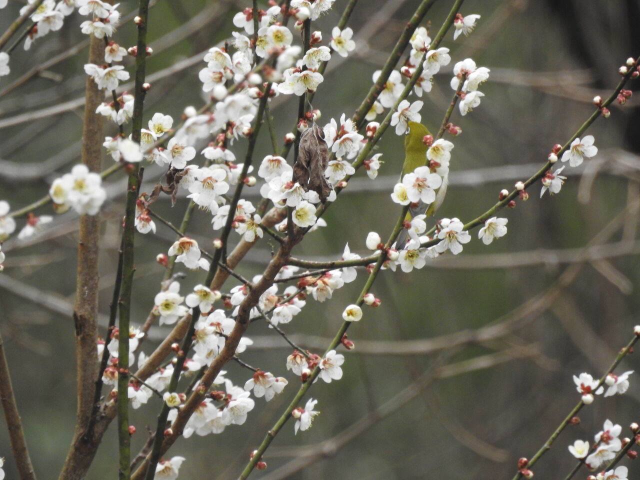 この花の具合なら、まだまだウメジロが撮れそうです。
