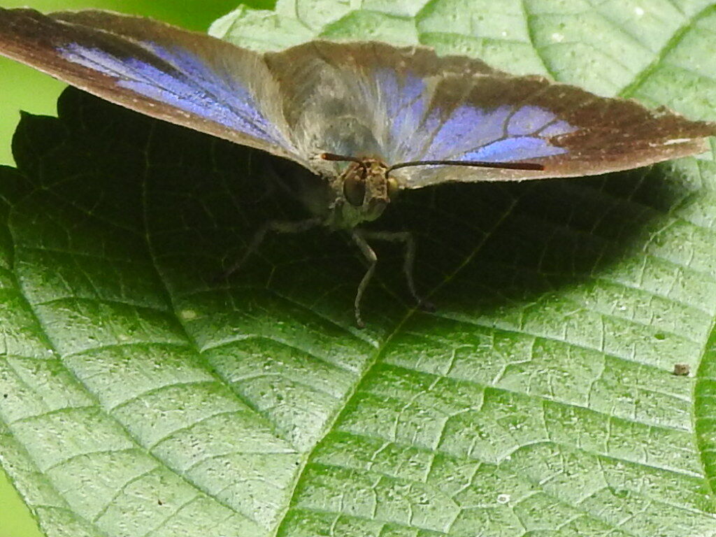 ムラサキシジミの翅のメタリックブルーの輝きが綺麗ですね。