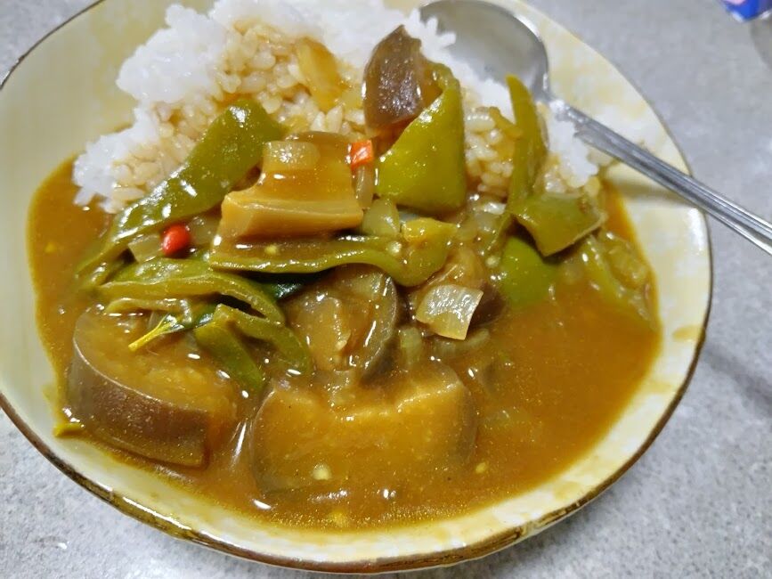ナスもピーマンも大きくカットして スパイスカレー風に