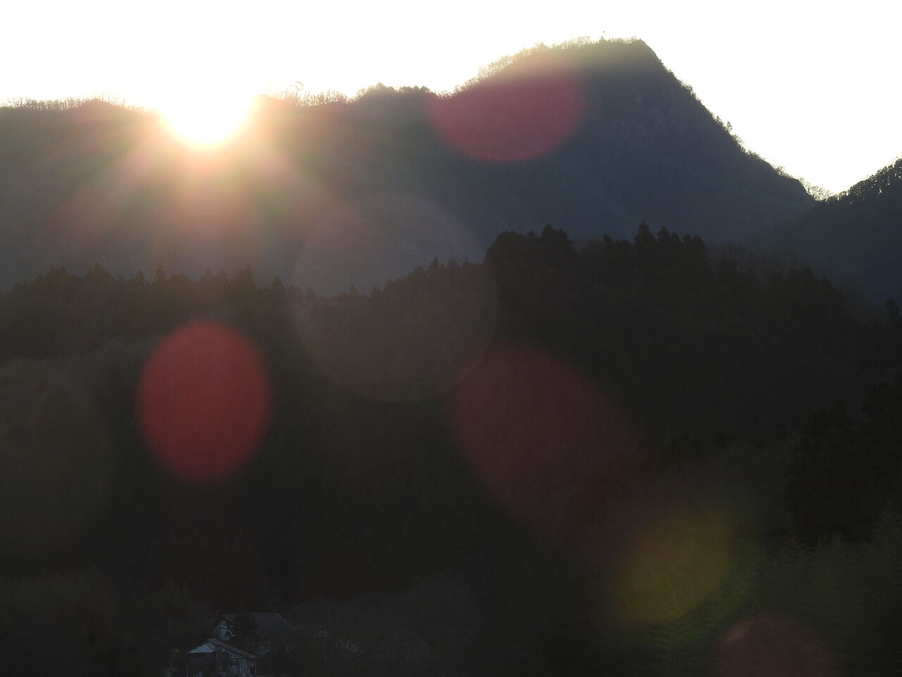 毎年撮ろうと思っても撮れなく やっと撮れました家に戻っって来る途中 コウゾ林の間からの初日の出