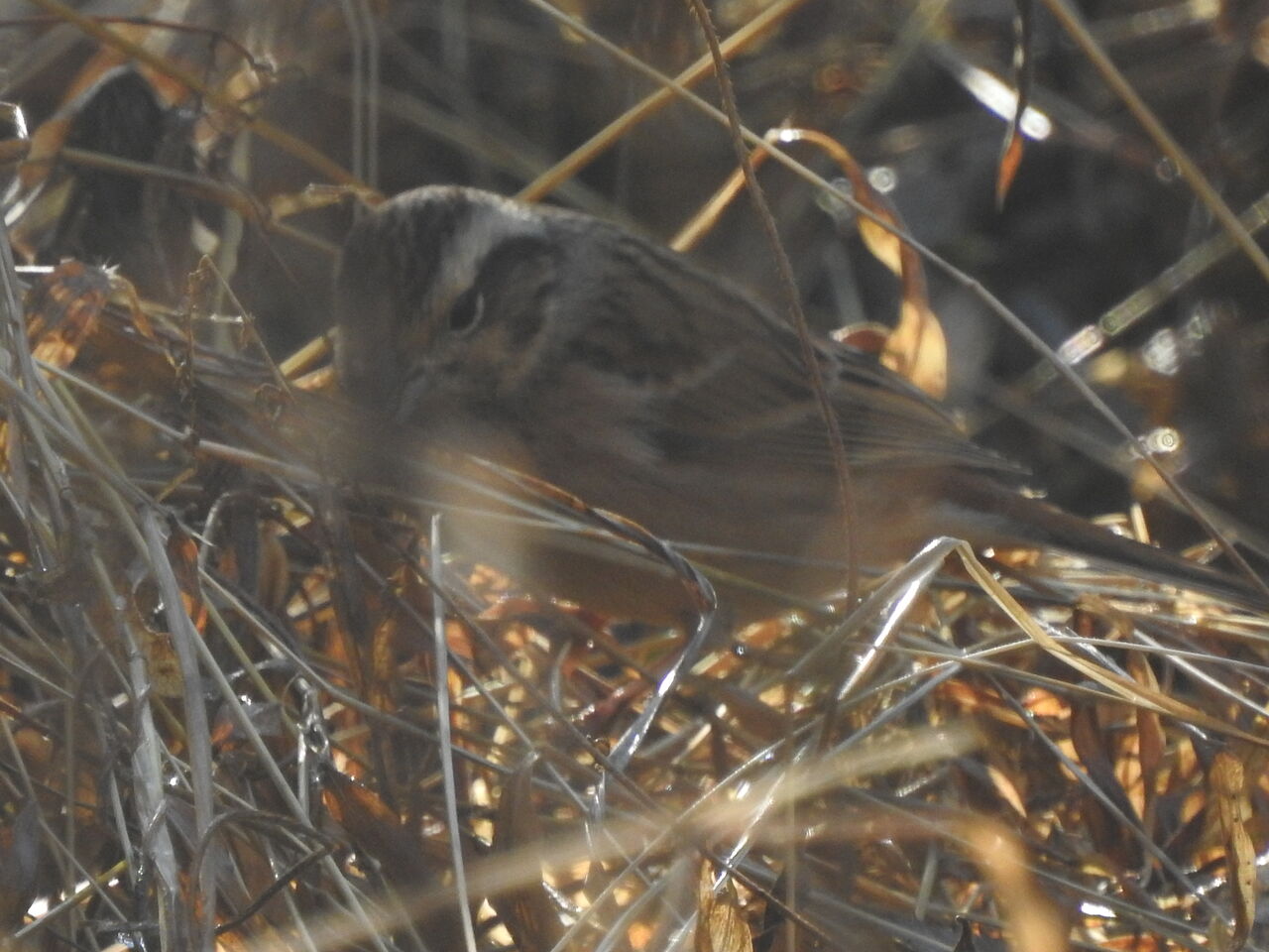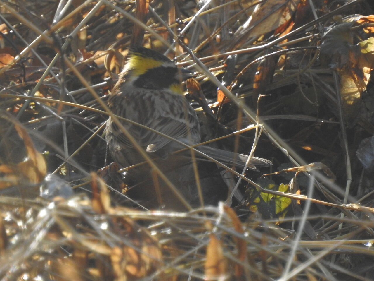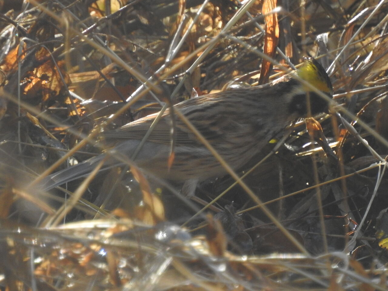 今回はしばらく前に出合ったミヤマホオジロの雌雄をミヤマホオジロの雄(1/22撮影)身体を伸ばしてエサ探しホオジロ類なので地表での餌探しが多いです草の実を咥えてるようなミヤマホオジロのメス オスと同じところに