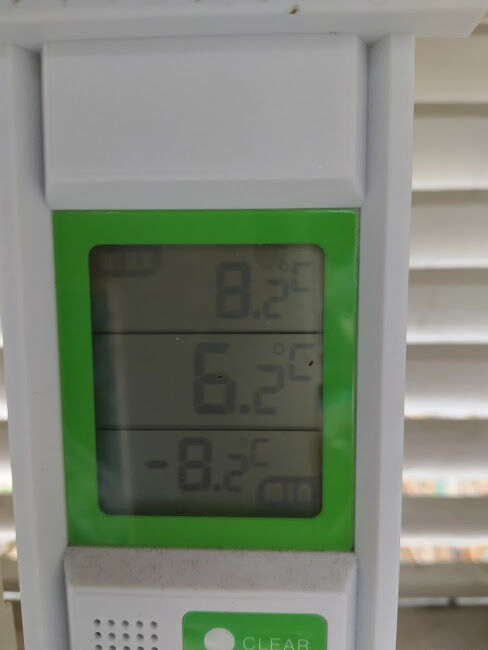 上が昨日の最高気温8.2度 真ん中が今日のお昼のころ6.2度