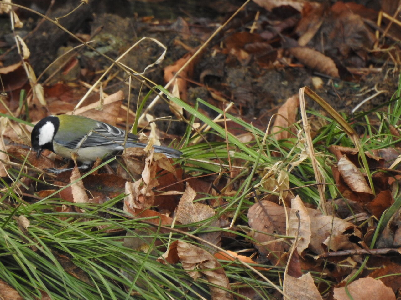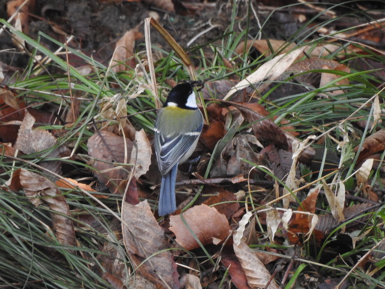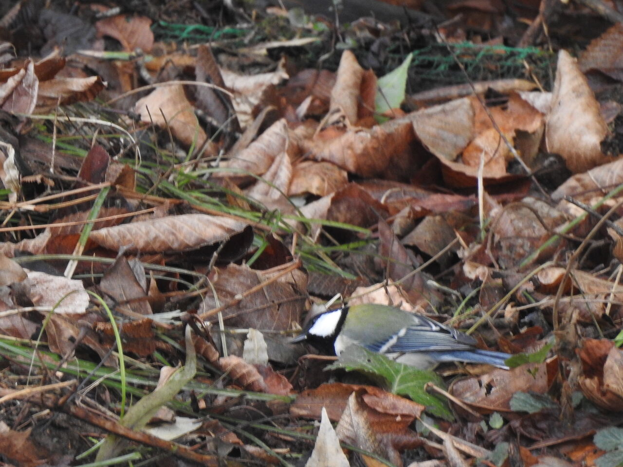 シジュウカラが何羽か来ても、このように枯葉が吹き寄せられた草地の上ではなかなか絵になるショットは撮れそうもないのが残念ですね。