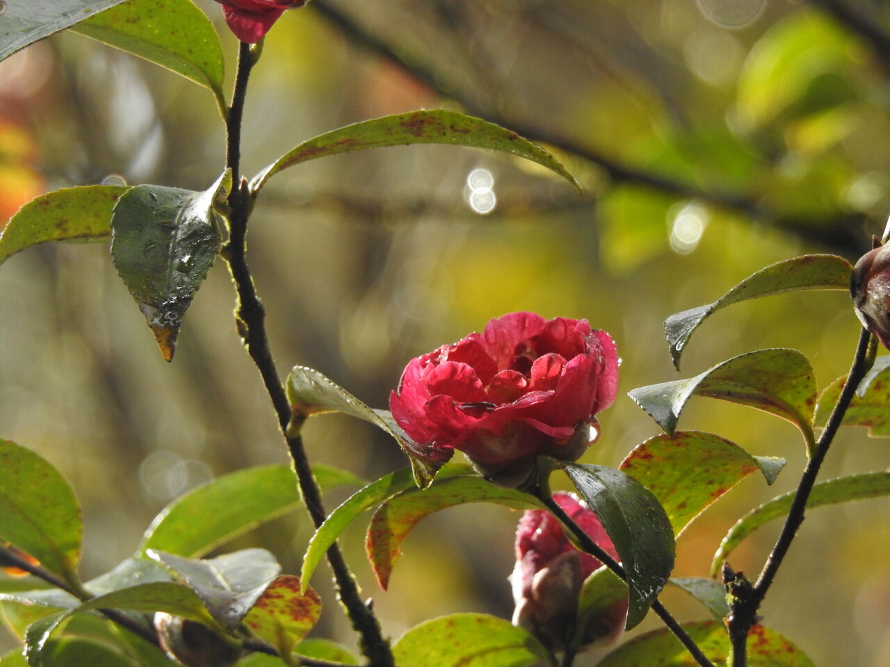 庭のボケの蕾が大きくなってきました~鳥さんが来ないかな~と待っています。