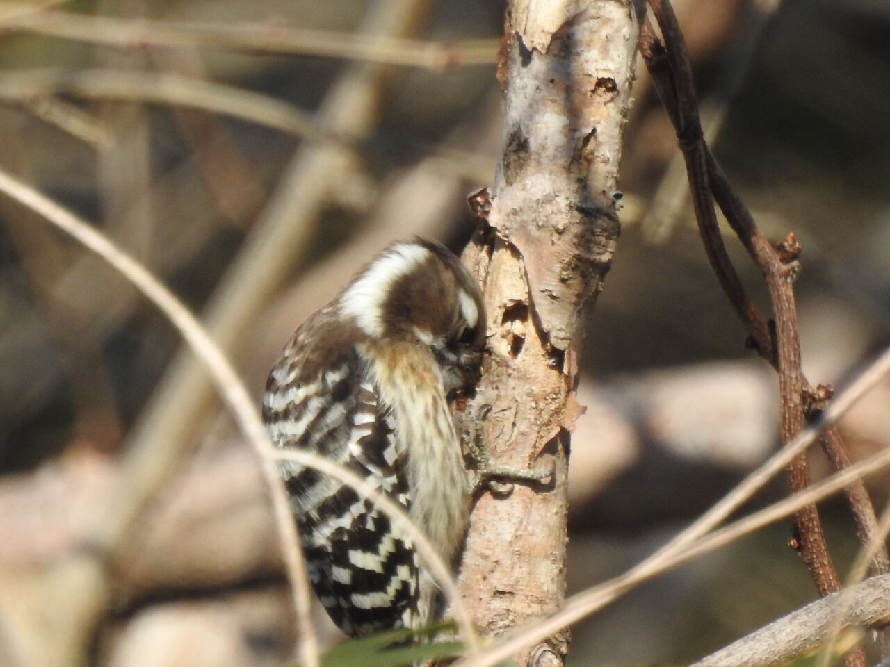 コゲラが、庭まで来るのね。庭で会えて良かったね。虫が冬眠してたのかな?