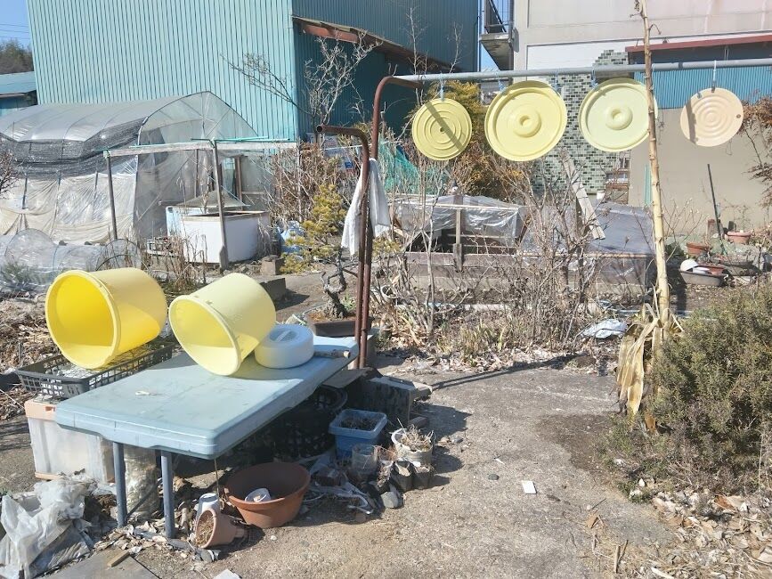 ほんと散策コースよりも庭の方が鳥は多いです漬物ダル二個と重しも よく洗剤で洗い干してます