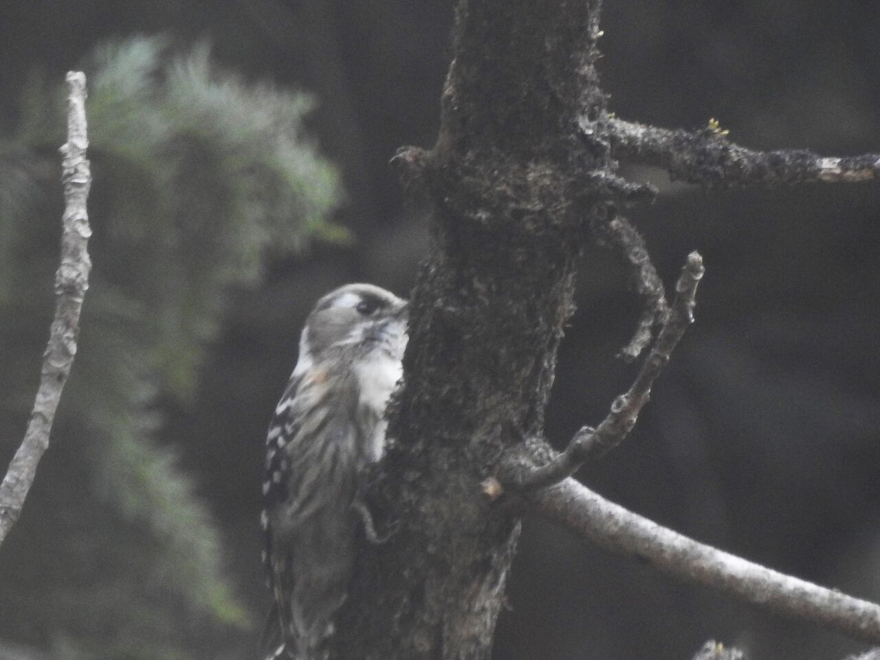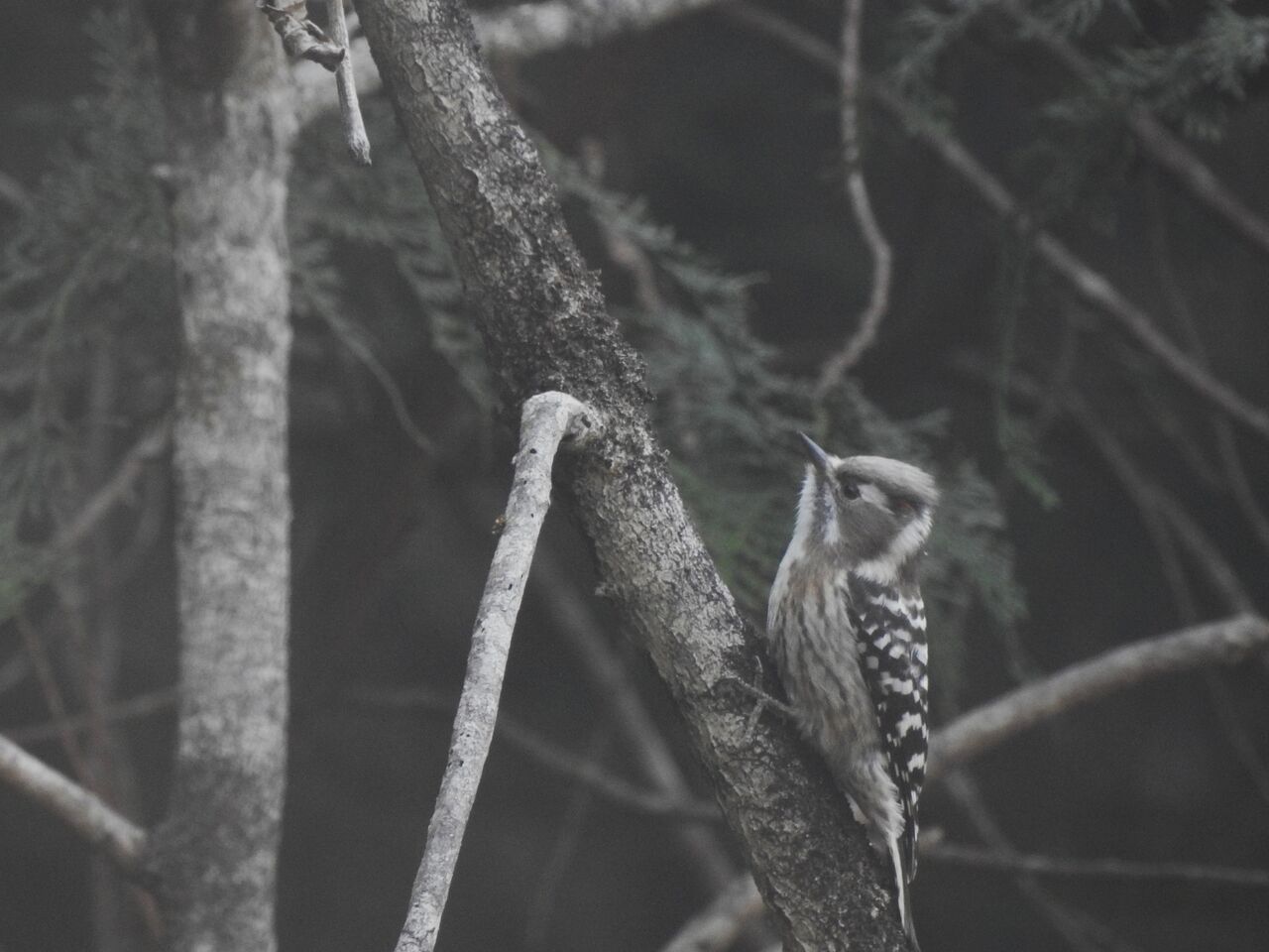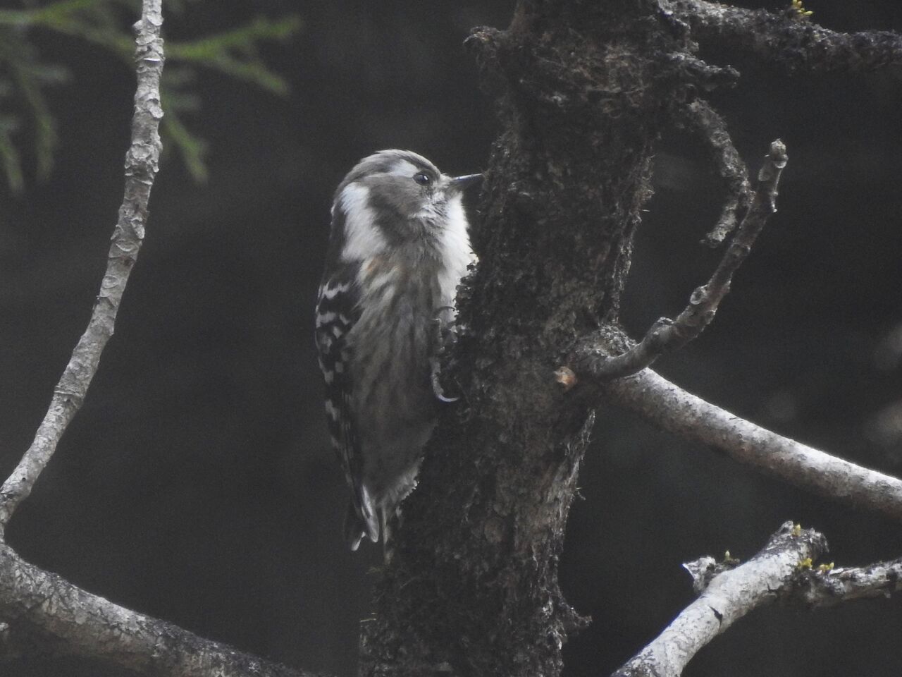 コゲラがバッチリですが、完全に白黒写真ですね。