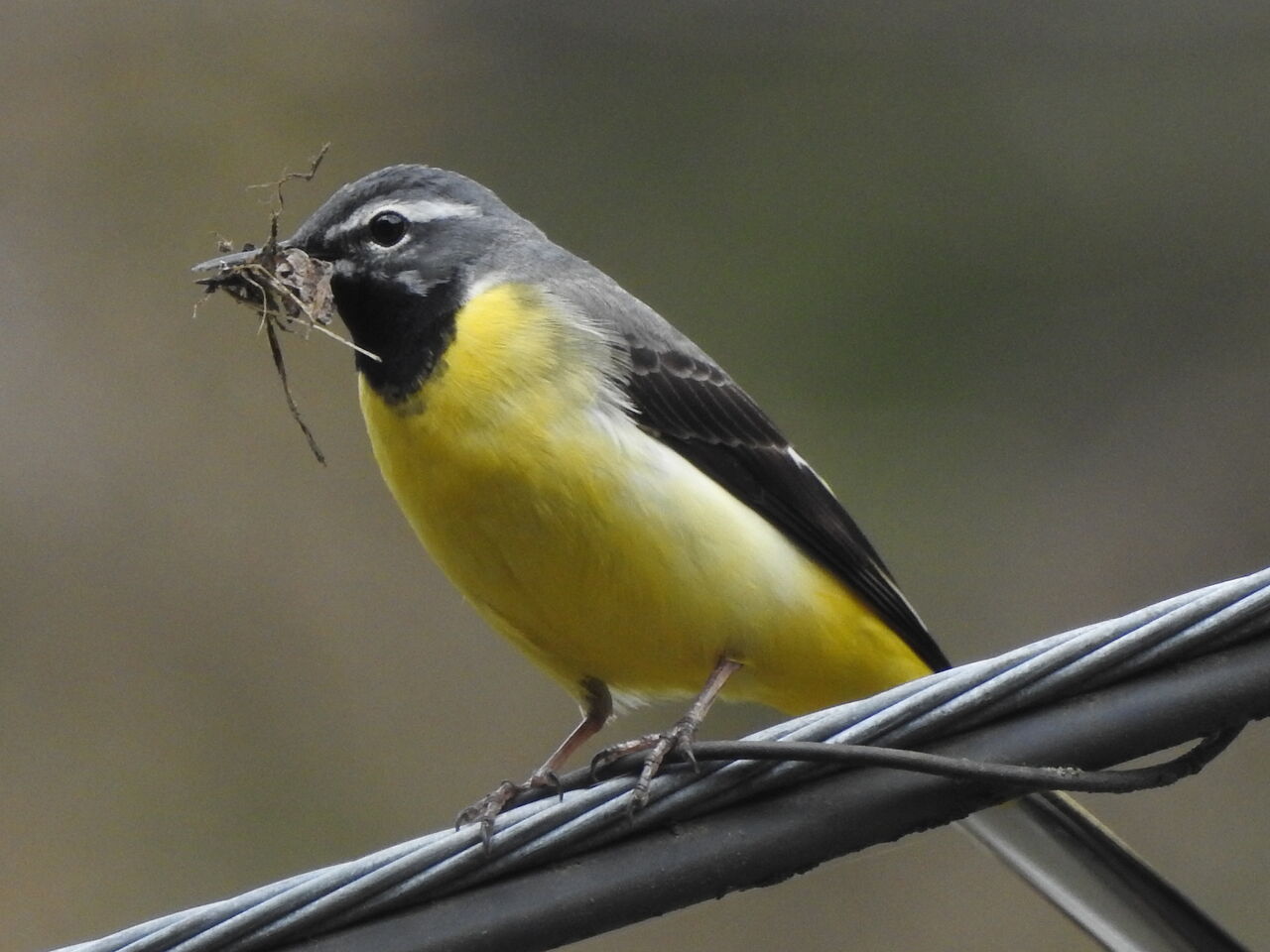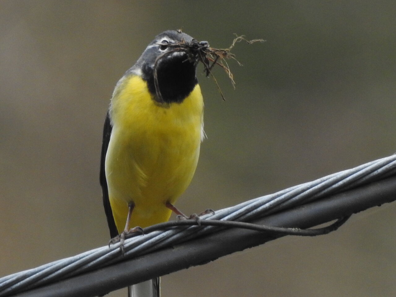 キセキレイの巣作りですね。