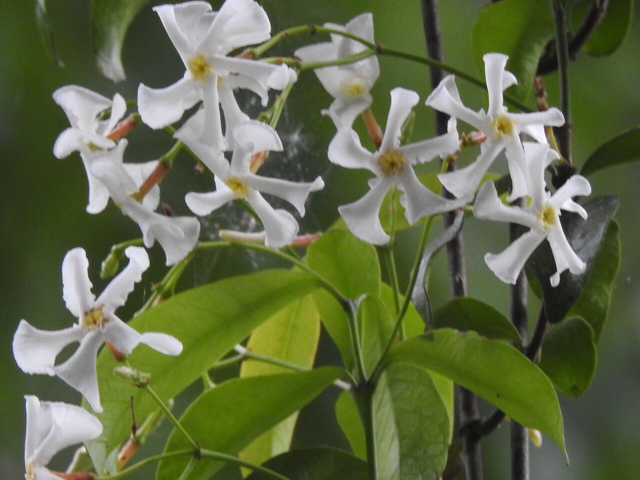 またおしゃべりの仲間に たまにはそんな日も良いですねつる性植物のテイカズラ 高い木から垂れ下がってて