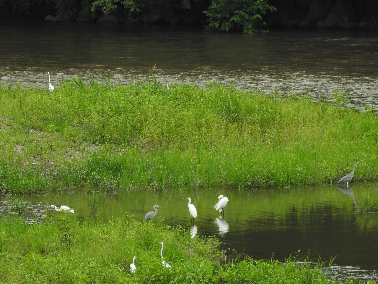 じっと待つシラサギたち辛抱強いですよね!エサが撮れるといいね。