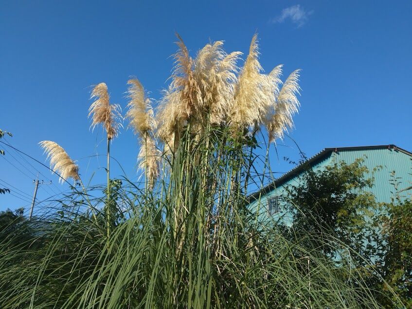 お庭に高さが3mを超すパンパグラスが二株も、とは驚きです。