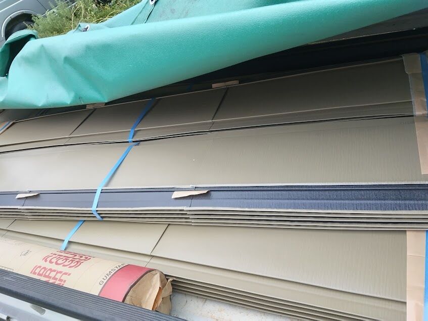 二階屋根の張替えは助っ人さんにお任せして、お二人は屋根まで上がらず地上での