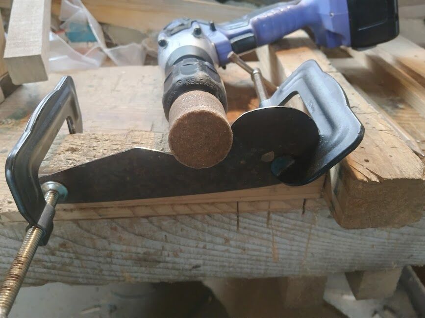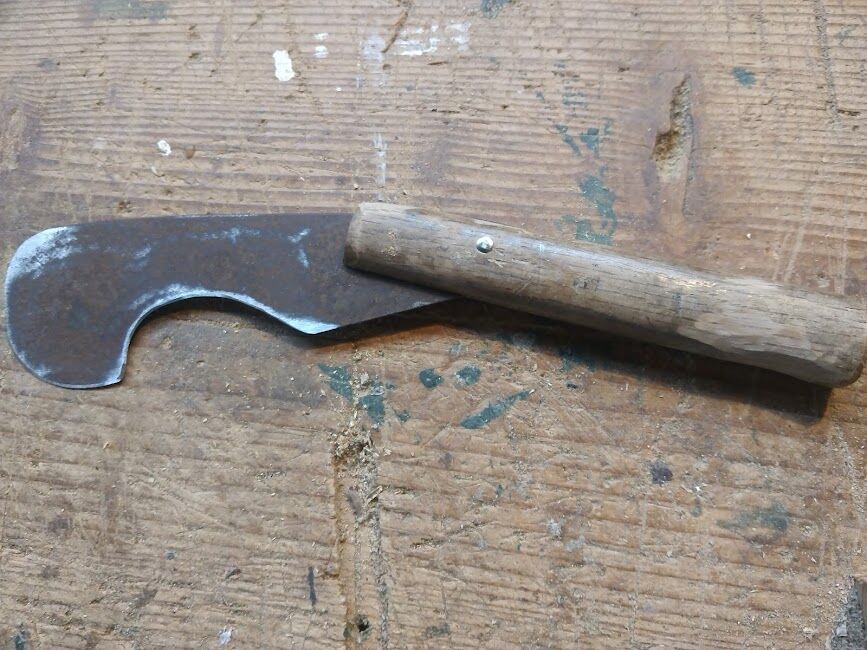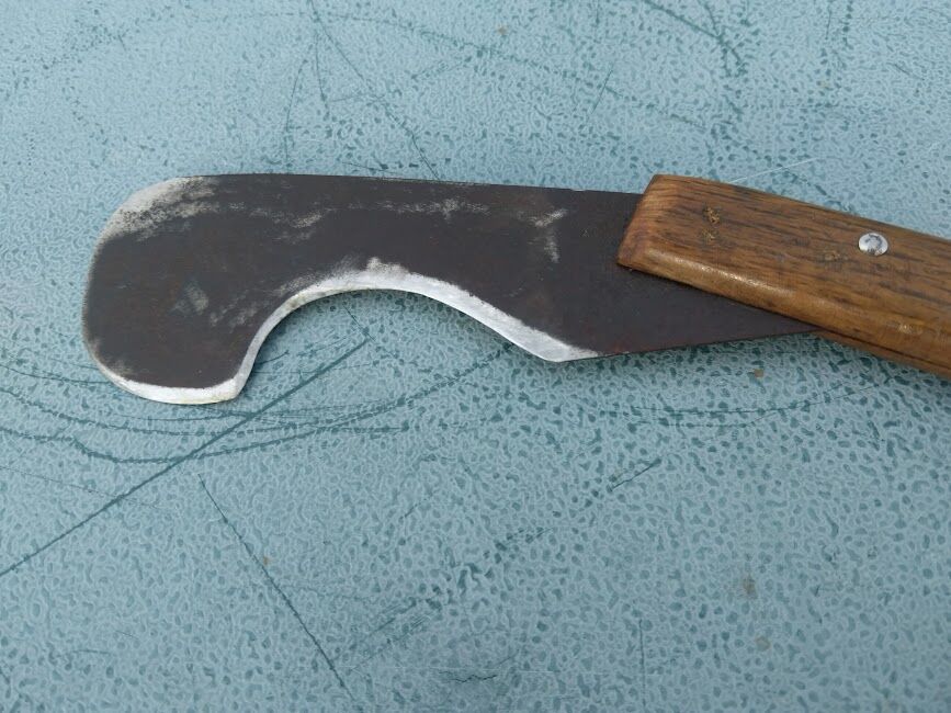 野菜収穫用兼フラワーナイフに大雑把にベルトサンダーで形に削り 角度をつけるために