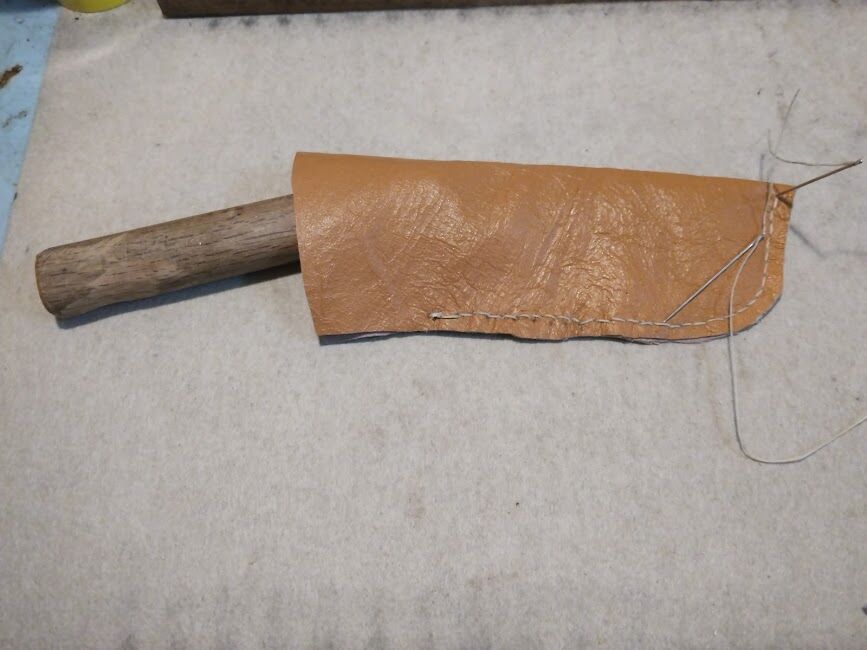 固定するピンの穴は その部分だけ焼き戻して穴開けました薄い皮があったので 端の使わない部分で カバー作り最後にベルトサンダーと仕上げに砥石で研ぎ 完成です