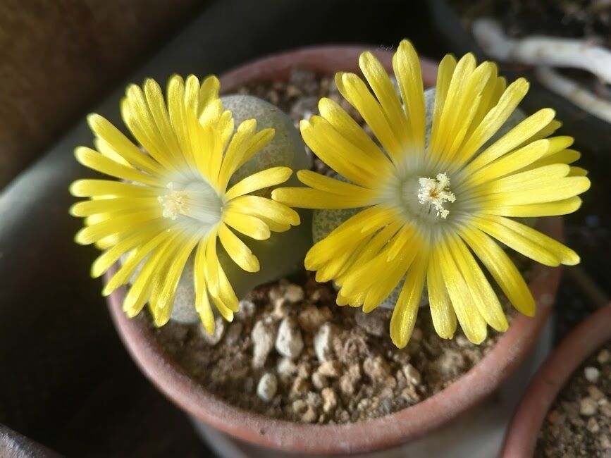 昼からはナイフに刃をつけて仕上げましたリトープスもう一個も咲きました 南アフリカ原産なので
