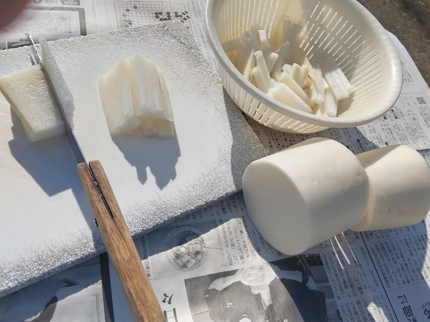 細く切ってました。先日はいちょう切りし干した大根を茹でこぼしてはりはり漬けもどきを作りました。結構おいしかったです。