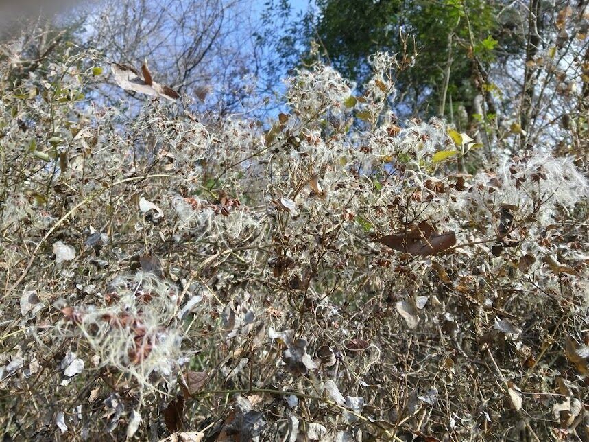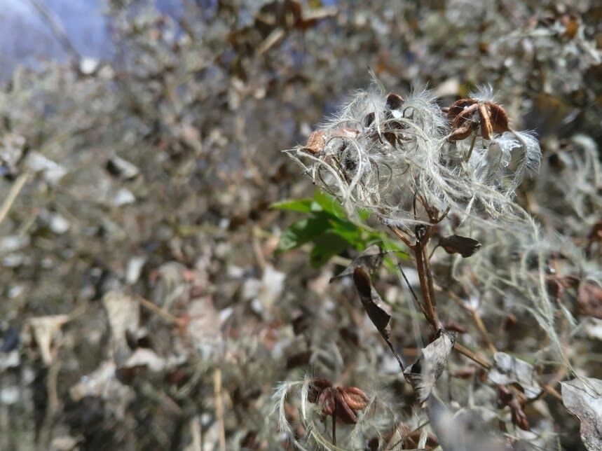 散策以外は今日もペンキ塗り ほんとの日課になってきました散策コースでセンニンソウの種 まだ残ってます特にここが一番多くあります 風を受けないからなのかシジュウカラ 去年もだったけど散策コースではシジュウカラの