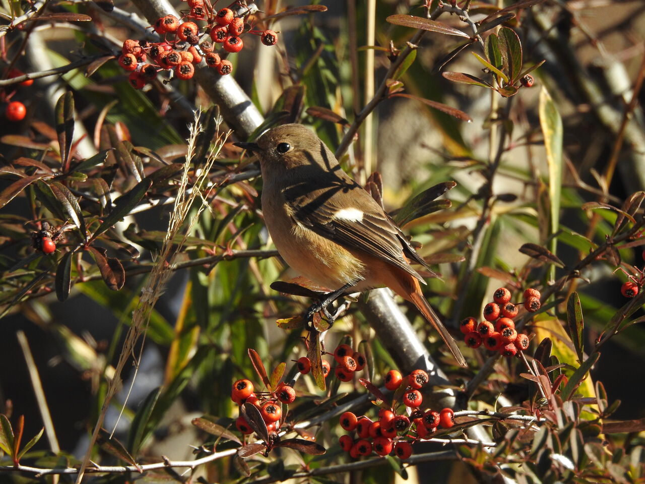 ジョウビタキはピラカンサの赤い実を啄んでいるようですね。