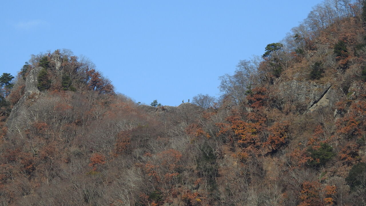 岩場では危なかったです やはりもう無理なのかな紅葉がまだまだ楽しめましたこの二蜂が月居山で右側の月居城跡の方に登りました