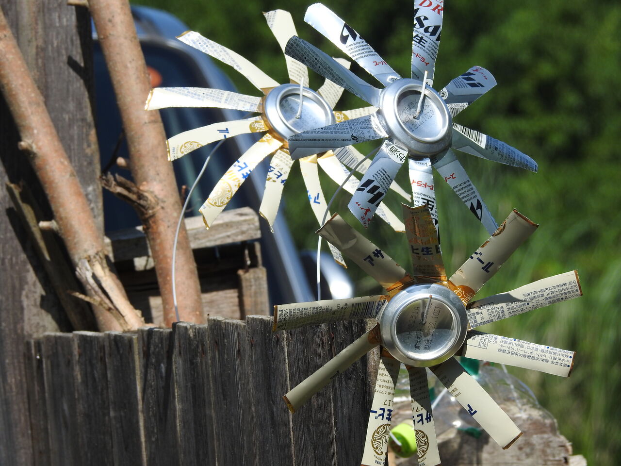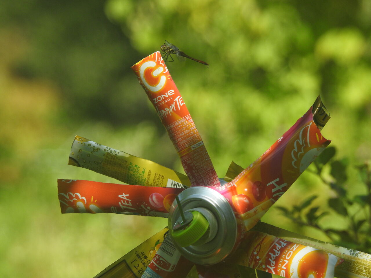 今日は刻み場の周りで見かけた虫たちを庭のあちこちに空き缶の風車を